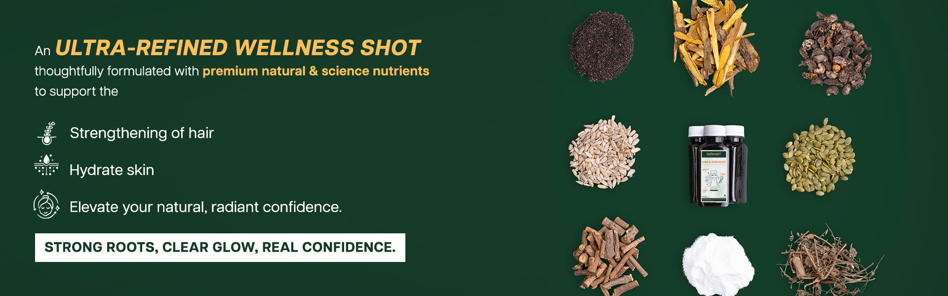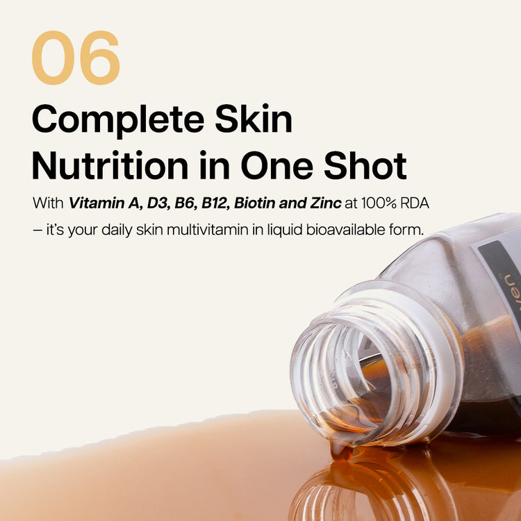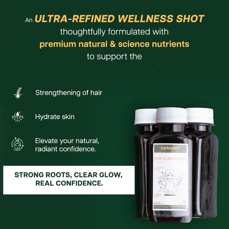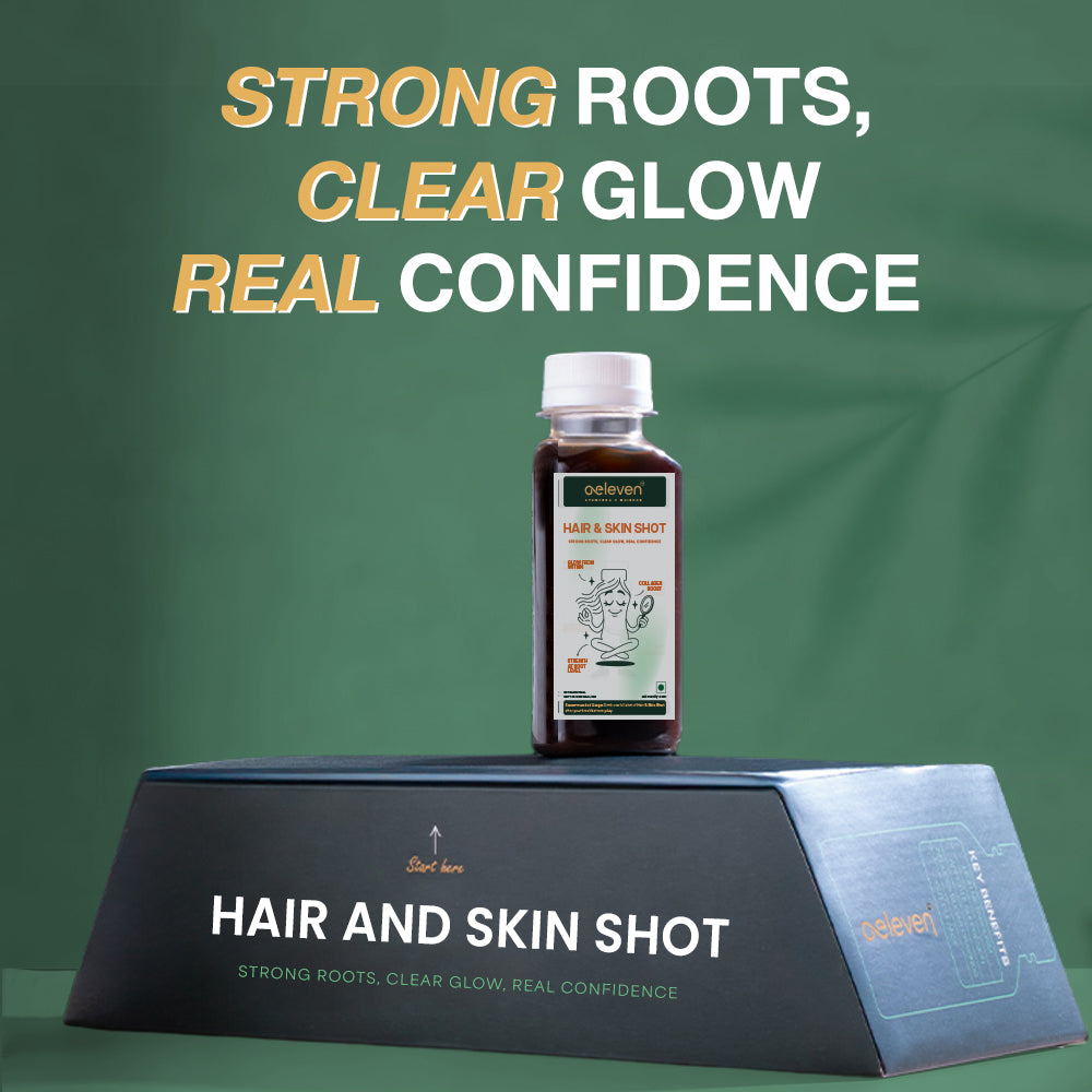 A powerhouse fusion of herbs, collagen, hyaluronic acid, vitamins. Hair and skin shot is designed to strength & stimulate your hair roots and unveil your skin’s inner glow and confidence giving you nourishment from within.