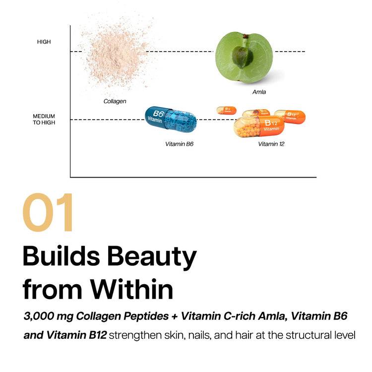 📞 Speak to our ExpertSunflower seed 2000mg, Amla 1800mg, Daruhaldi 1800mg, Bhringaraj 1500mg, Mulethi 1200mg, Sesame seed 1100mg, Pumpkin seed 1000mg, Collagen peptide 3000mg, Sodium chloride 800mg, Magnesium aspartate 200mg, Theobromine 150mg, Hyaluronic acid 100mg, Zinc gluconate 11mg, Astaxanthin 4mg, Vitamin B6 1mg, Biotin 40mcg, Vitamin D3 10mcg, Vitamin B12 1mcg, Vitamin A 600iu, aqua, Stevia extract, Potassium sorbate INS202, Glycerin INS 422, Citric acid INS 330, Xanthan gum INS 415, Sorbitol INS 420(ii), Natural Litchi flavour.